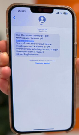 Utklipp: telefon med sms om uravstemning (Foto: Lars Helgerud)